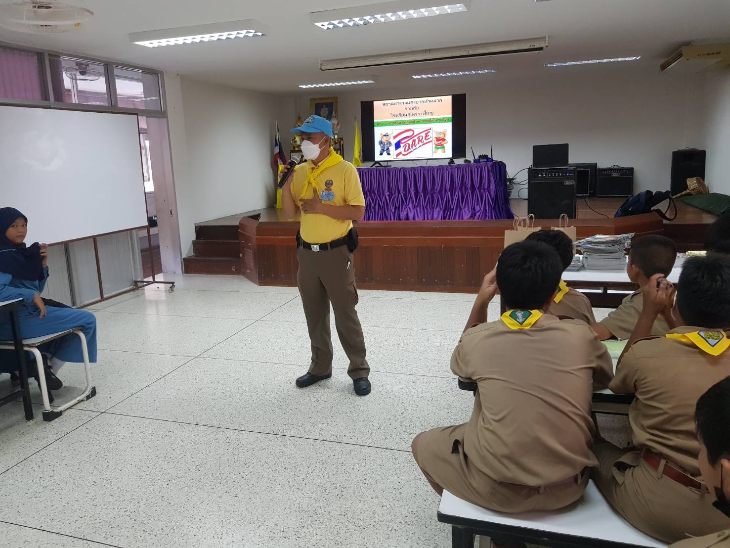 ร่วมพิธีเปิดโครงการ ป้องกันการใช้ยาเสพติดในเด็กนักเรียน D.A.R.E. และร่วมให้ความรู้กับเยาวชนในเรื่อง การป้องกันการถูกหลอกลวงจากสื่อออนไลน์ และการใช้สื่อออนไลน์ในเชิงสร้างสรร ให้กับ นักเรียน โรงเรียนสุเหร่าวังใหญ่ แขวงหัวหมาก เขตบางกะปิ กรุงเทพ