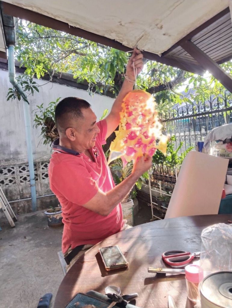 มุ้งมิ้งไม่ใช่เล่น ชุด ตชส.สน.หัวหมาก เข้าสาธิตการทำพวงมโหตร ให้กับวิทยากรชมรมผู้สูงอายุชุมชนกิตตินิเวศน์ เพื่อนำไปใช้ในกิจกรรมของชมรม ต่อไป