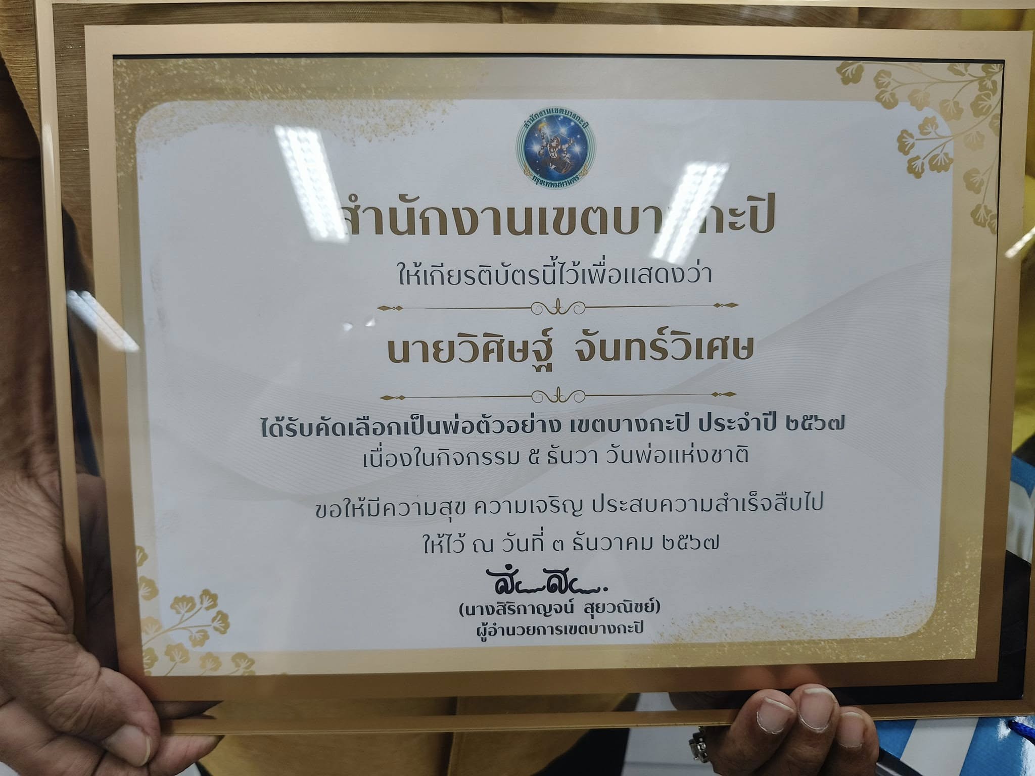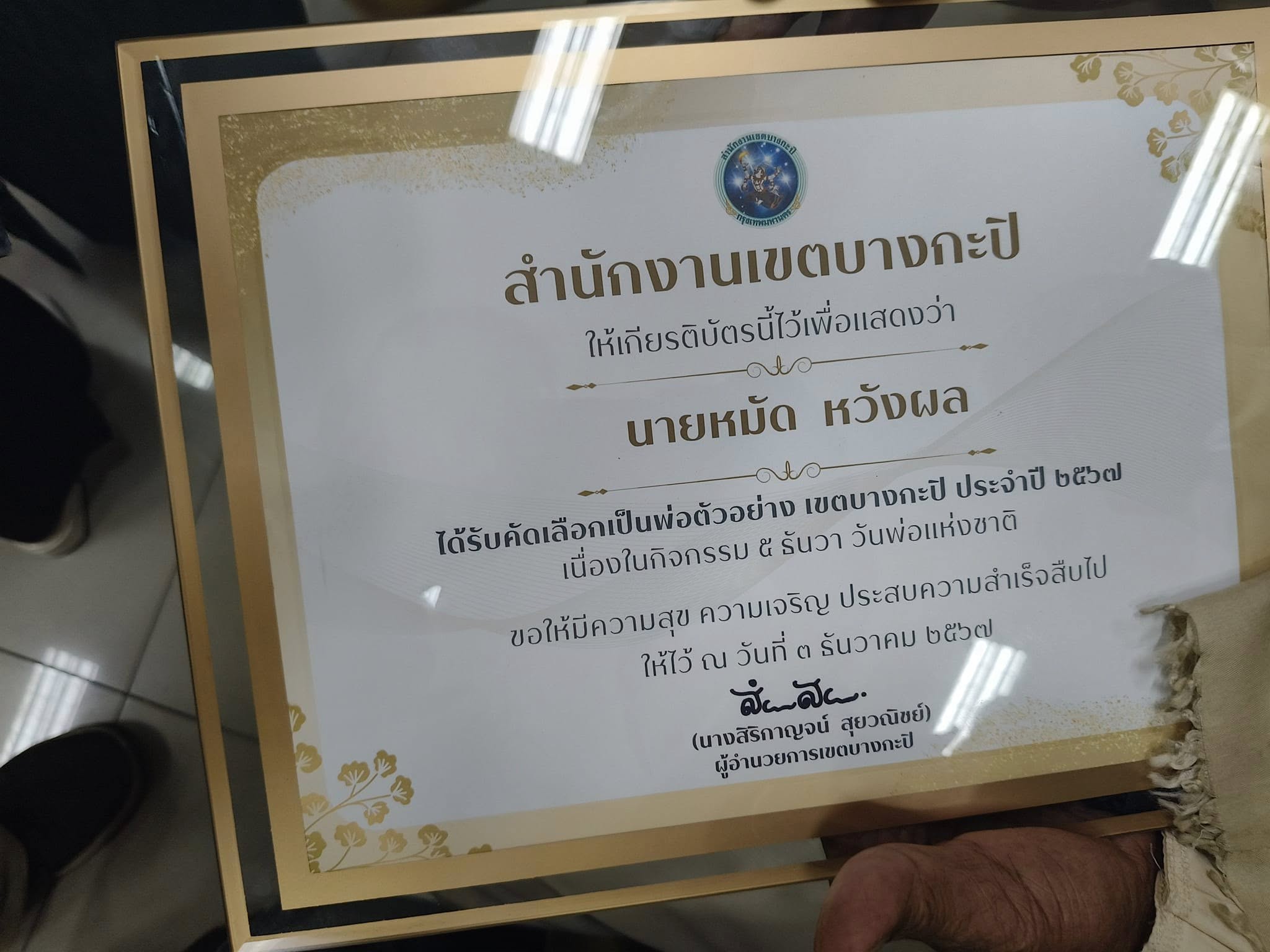 ร่วมแสดงความยินดี กับ ผู้เข้ารับรางวัลพ่อดีเด่นประจำปี ของสำนักเขตบางกะปิ