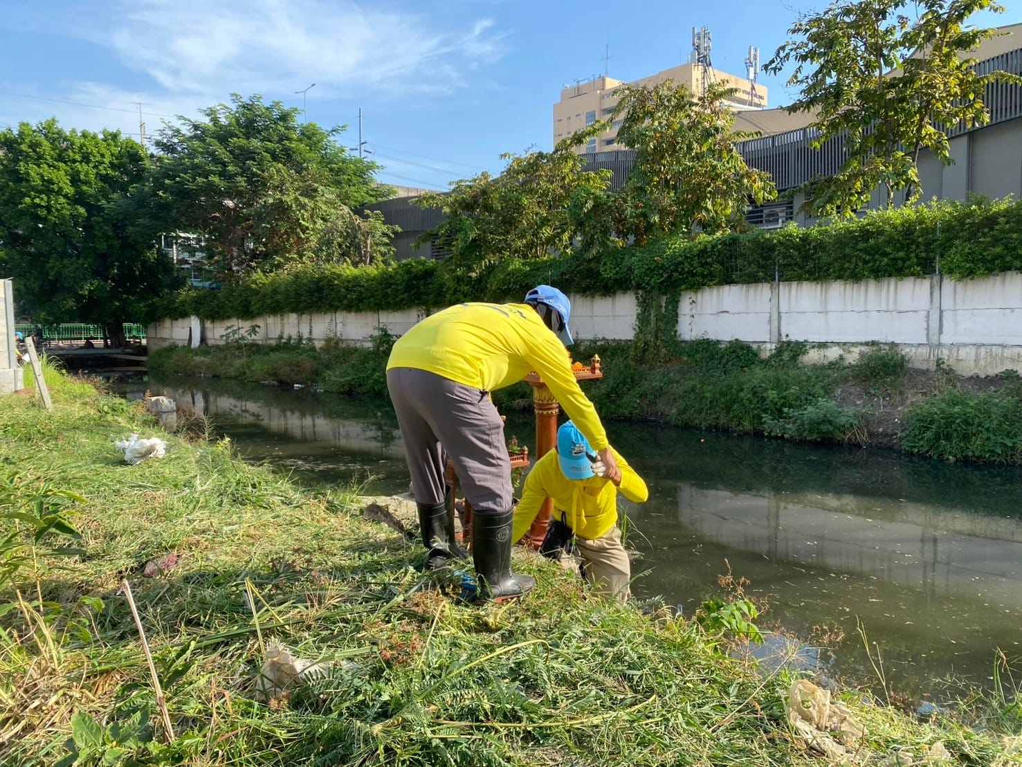 ร่วมประชาชน จิตอาสาพัฒนา ทำกิจกรรมปรับภูมิทัศน์ตัดต้นไม้ วัชพืชริมคลอง