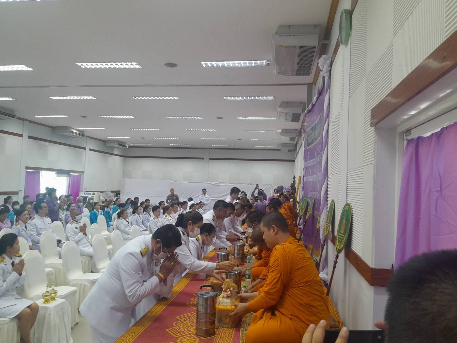 กิจกรรมพิธีทำบุญถวายพัตตราหารเพล ตักบาตรข้าวสารอาหารแห้ง พระสงฆ์ (10รูป) พิธีถวายเครื่องราชสักการะและวางพานพุ่ม บริการออกหน่วยตัดผมของศูนย์ฝึกอาชีพ