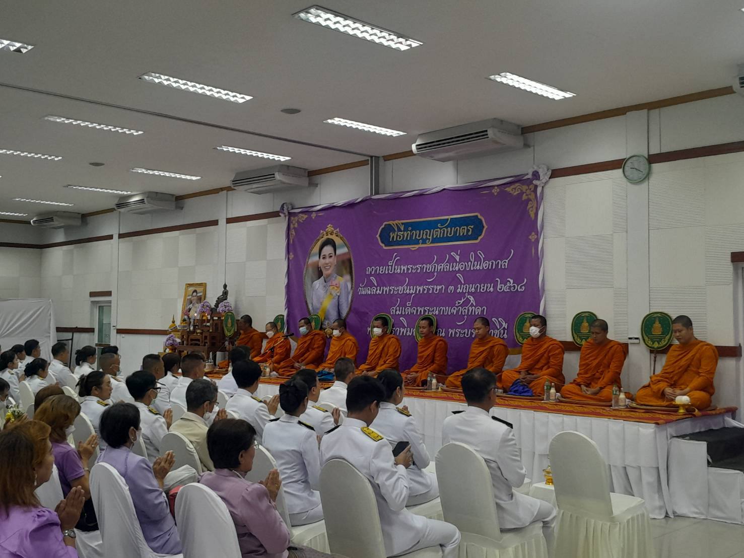 เฉลิมพระเกียรติสมเด็จพระนางเจ้าฯ พระบรมราชินี เนื่องในโอกาสวันเฉลิมชนมพรรษา 3 มิ.ย.68“ กิจกรรมพิธีทำบุญถวายพัตตราหารเพล ตักบาตรข้าวสารอาหารแห้ง พระสงฆ์ (10รูป)