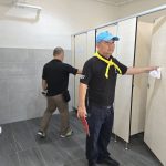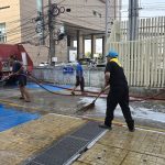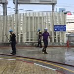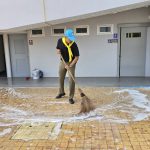 ล้างทำความสะอาดพื้นบริเวณรอบอาคารทำการและกำจัดวัชพืชริมคลองเก็บขยะ สน.หัวหมาก