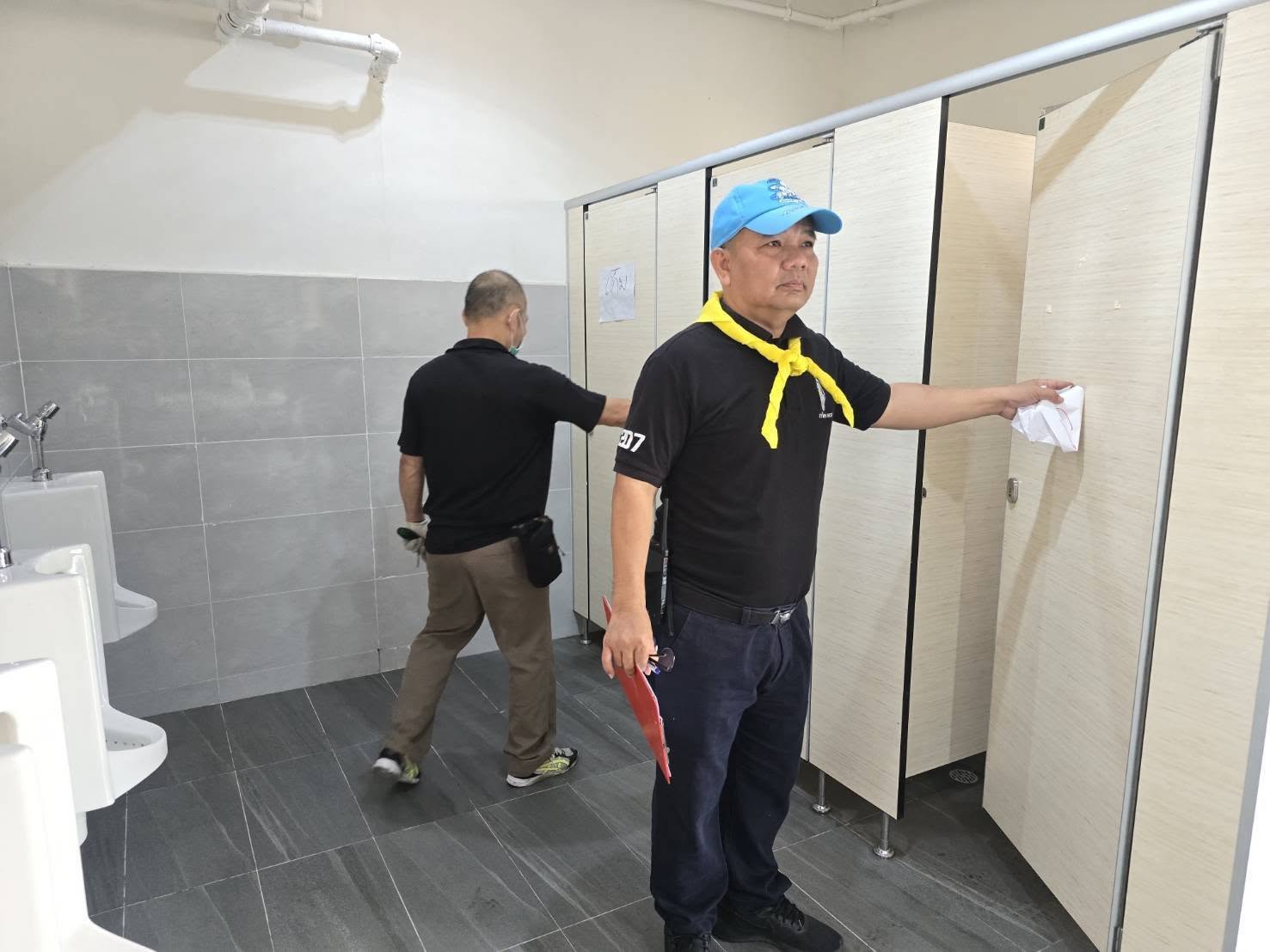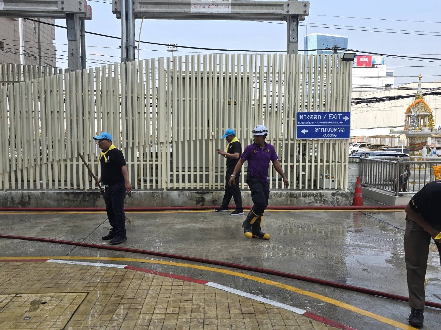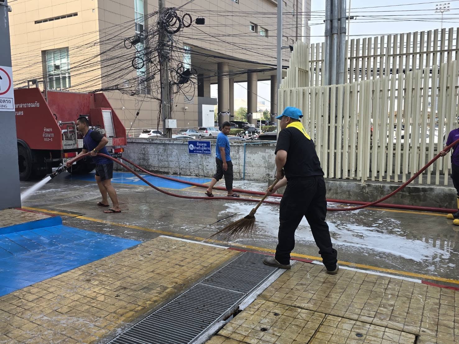 ล้างทำความสะอาดพื้นบริเวณรอบอาคารทำการและกำจัดวัชพืชริมคลองเก็บขยะ สน.หัวหมาก