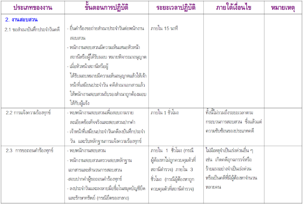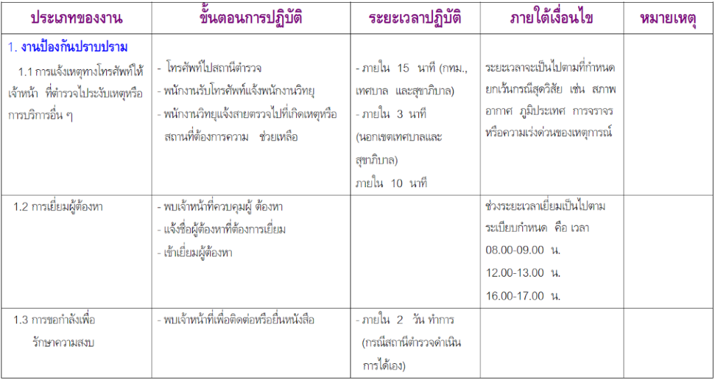 ตัวชี้วัดย่อยที่ 9.2 การดำเนินงานการให้บริการ09 คู่มือการให้บริการประชาชน📄⬇️ดาวน์โหลดเอกสาร/คู่มือ สำหรับประชาชน อื่นๆ ที่เกี่ยวข้อง📖 คู่มือประชาชนว่าด้วยการใช้เสรีภาพในการชุมนุม📖 คู่มือบริการประชาชน สำนักงานตำรวจแห่งชาติ 2558📖 คู่มือบริการประชาชน สำนักงานตำรวจแห่งชาติ 2559📖 คู่มือบริการประชาชน สำนักงานตำรวจแห่งชาติ 2563📖 คู่มือประชาชนติดต่อราชการ📖 หนังสือแจ้งการชุมนุมสาธารณะ 📖 ประกาศสำนักนายกรัฐมนตรี เรื่อง กำหนดวิธีการแจ้งการชุมนุมสาธารณะ พ.ศ.2558📖 ประกาศสำนักนายกรัฐมนตรี เรื่อง เครื่องมือควบคุมฝูงชนในการชุมนุมสาธารณะ 2558📖 ระเบียบ ตร. ว่าด้วยการกำหนดอำนาจหน้าที่ของส่วนราชการสำนักงานตำรวจแห่งชาติ (ฉบับที่ 16) พ.ศ.2562 📖 พันธะสัญญาแต่ละฝ่าย 📄⬇️ดาวน์โหลดเอกสาร/คู่มือ การให้บริการประชาชนแยกตามสายงาน📖 คู่มือการให้บริการประชาชนงานธุรการและอำนวยการ📖 คู่มือการให้บริการประชาชนงานป้องกันปราบปราม📖 คู่มือการให้บริการประชาชนงานสอบสวน📖 คู่มือการให้บริการประชาชนงานจราจร📖 คู่มือการใช้บริการงานสืบสวน กลับหน้า ITA งานป้องกันปราบปราม งานจราจร งานอำนวยการ งานสอบสวน